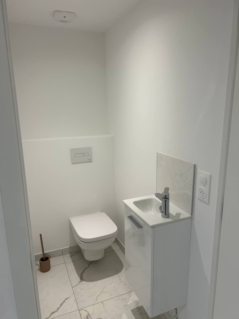 compose d’une entrée avec placard intégré, d’un séjour lumineux ouvrant sur une terrasse