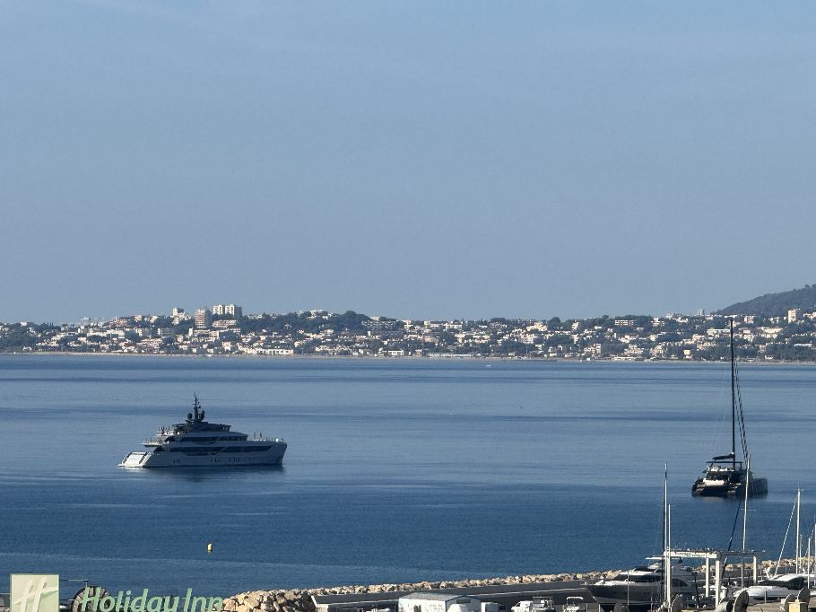 sur le toit avec une vue panoramique sur la mer.