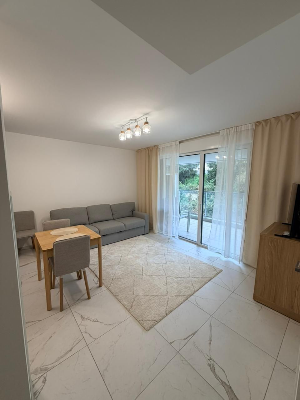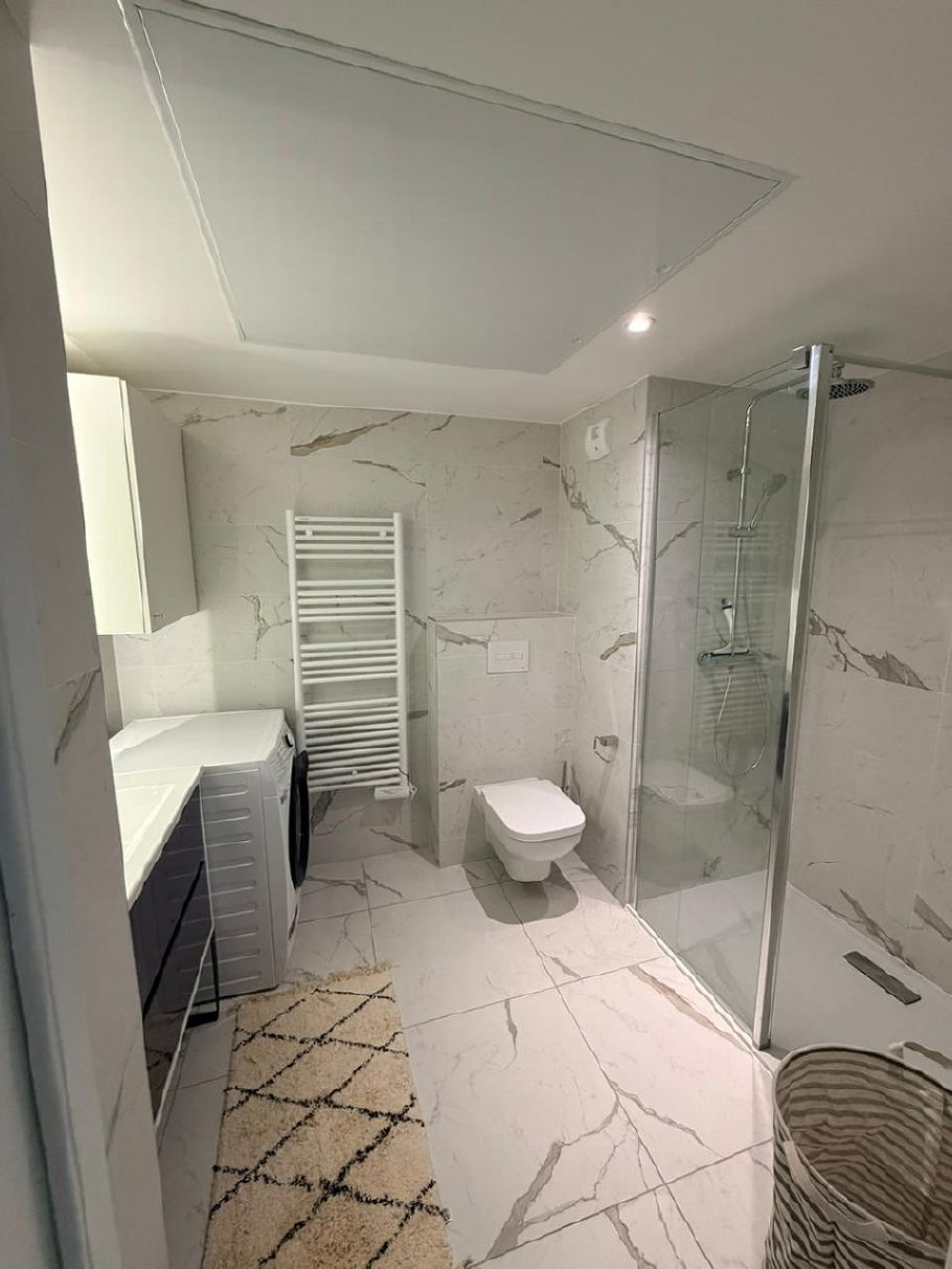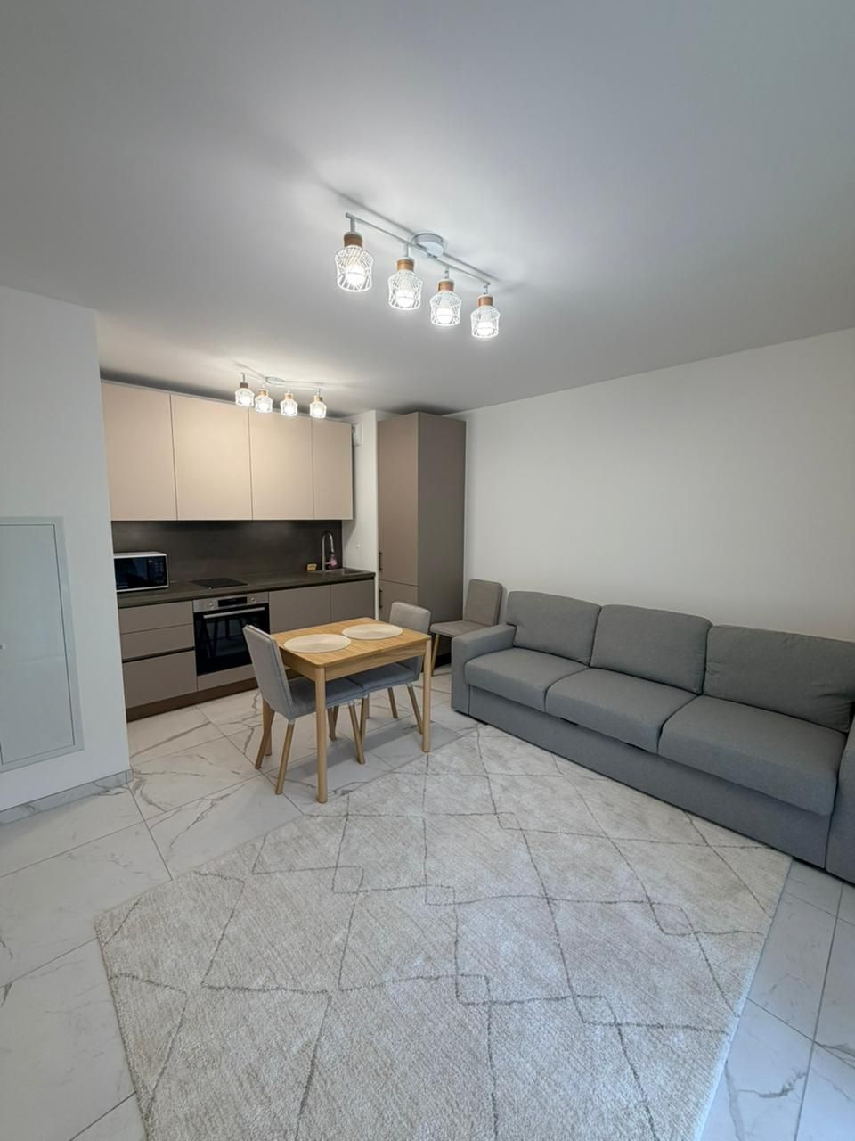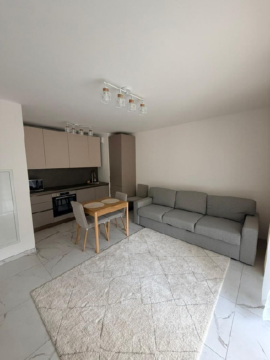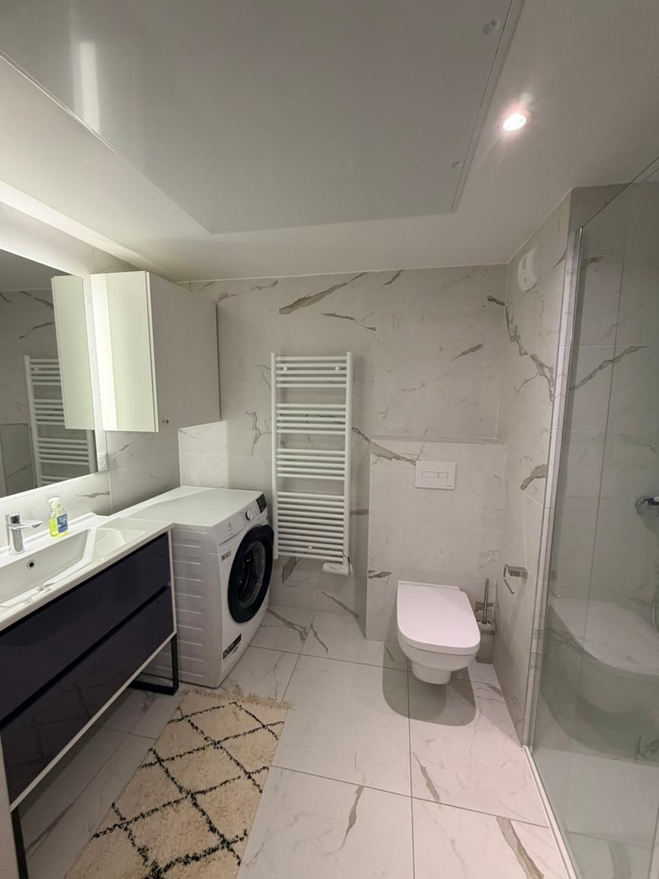 L’appartement de 2 pièces, situé dans un immeuble neuf, se compose d’une entrée avec